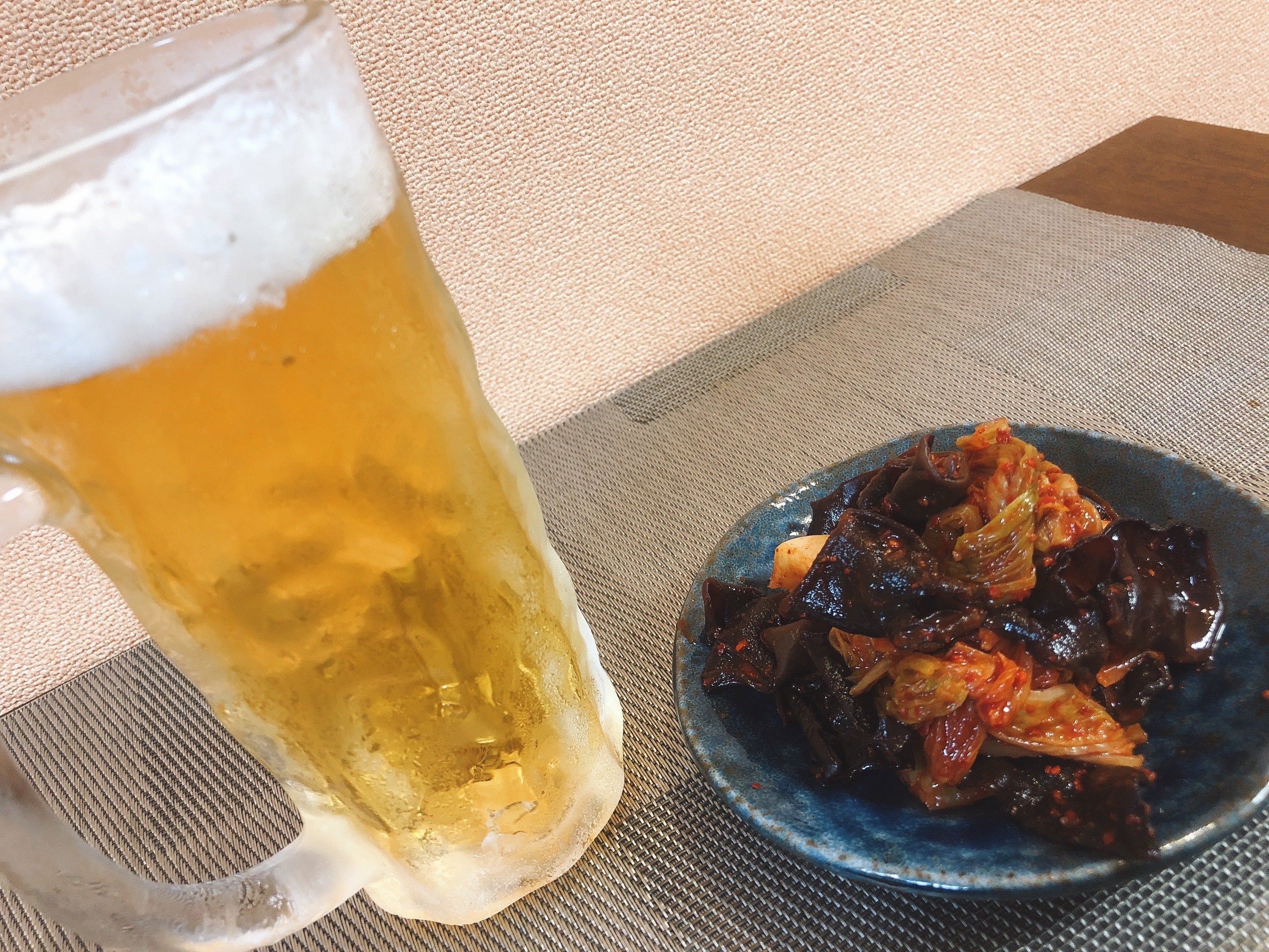 生ビールときくらげキムチ