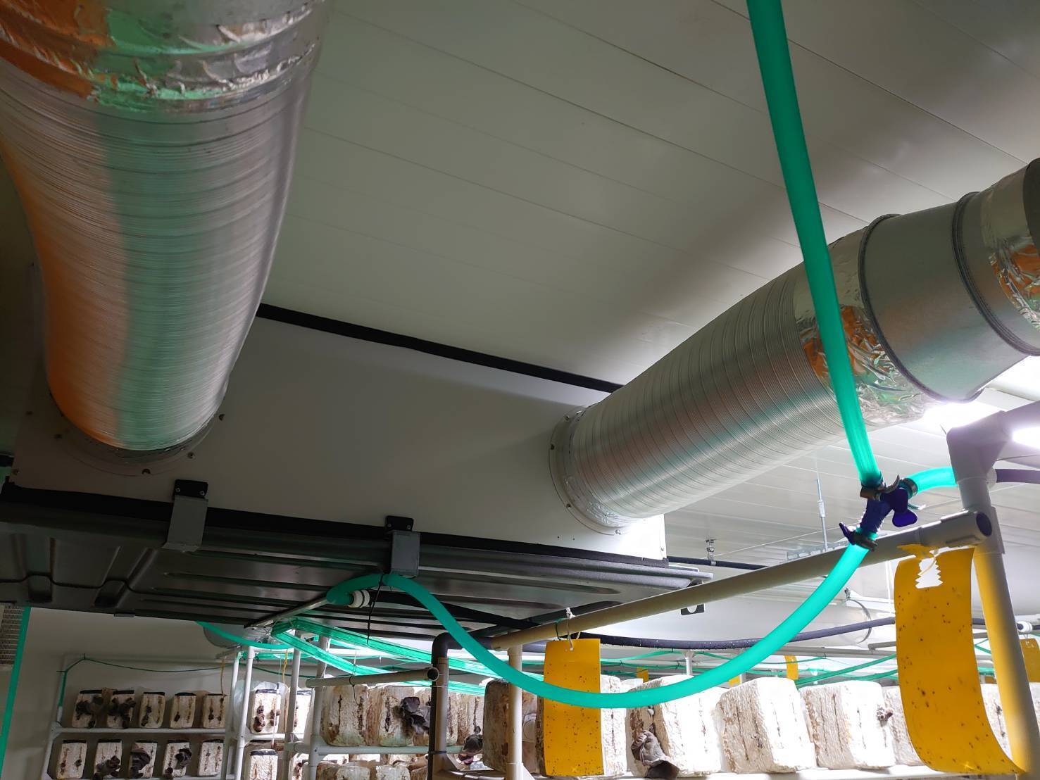 夏のキノコであるきくらげを通年で栽培・出荷するため、温度差や異常気象などの影響を受けない完全閉鎖型植物工場(コンテナ )での栽培を行っています。施設内で「温度、湿度、水分、二酸化炭素濃度」などの育成環境の制御とモニタリングを行うことで生育のコントロール、安定した品質のきくらげを生産しています。