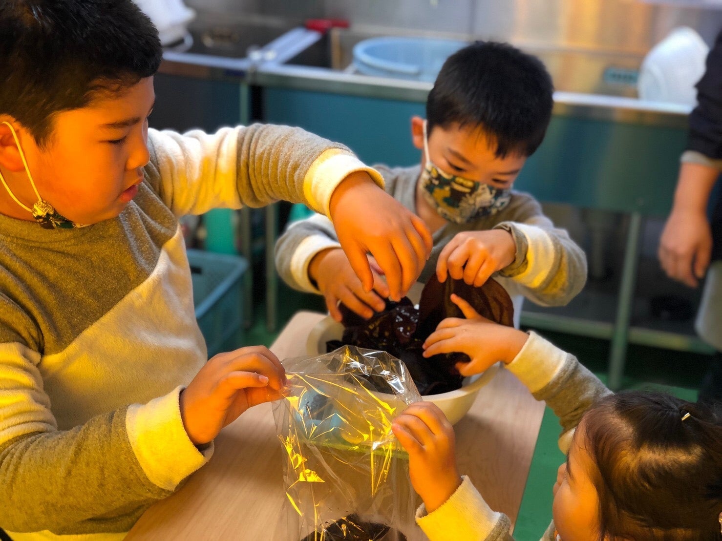 子供たちにきくらげの収穫作業から洗浄作業までを行ってもらいました!!