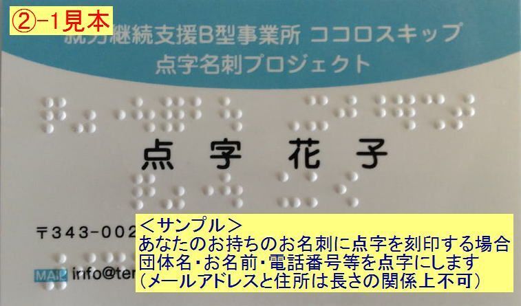 ■お名刺への点字刻印(②-1)、お名刺作成および点字刻印(②-2)のサンプル