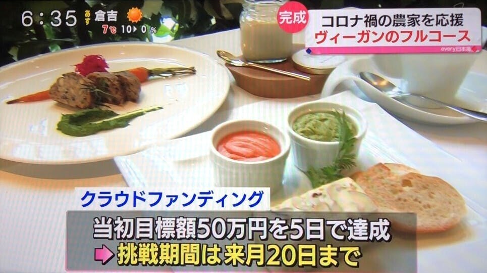 2021/01/21 11:56日本海テレビさまにクラウドファンディングの取り組みをニュースでご紹介いただきました!リターン品の「おうちで味わう鳥取野菜のヴィーガンフルコース」の地元生産者様や関係者の方向けのお披露目試食会の模様です。試食会でいただきました皆様からのご声援は改めてご紹介させていただきます。クラウドファンディングはネクストゴールに向け挑戦を行っております。引き続き応援よろしくお願いいたします! もっと見る