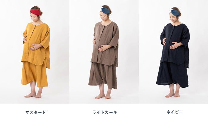 長くてつらい陣痛の最中でも出産に集中できるよう、肌の露出を最小限に抑えたデザインです。セパレートタイプで着脱しやすく、冷えの防止にも役立ちます。心と体の負担を減らし安心して出産にのぞめます。