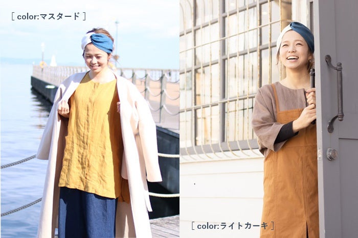 バースクロスと同じリネンを使用。幅を広くすることでズレが少なく、ホールド感があるため、家事や育児でヘアスタイルを整える時間がない時に最適!出産中も髪が邪魔にならず、授乳の際にも髪が赤ちゃんに当たらないので衛生的です。普段使いにもオシャレ!