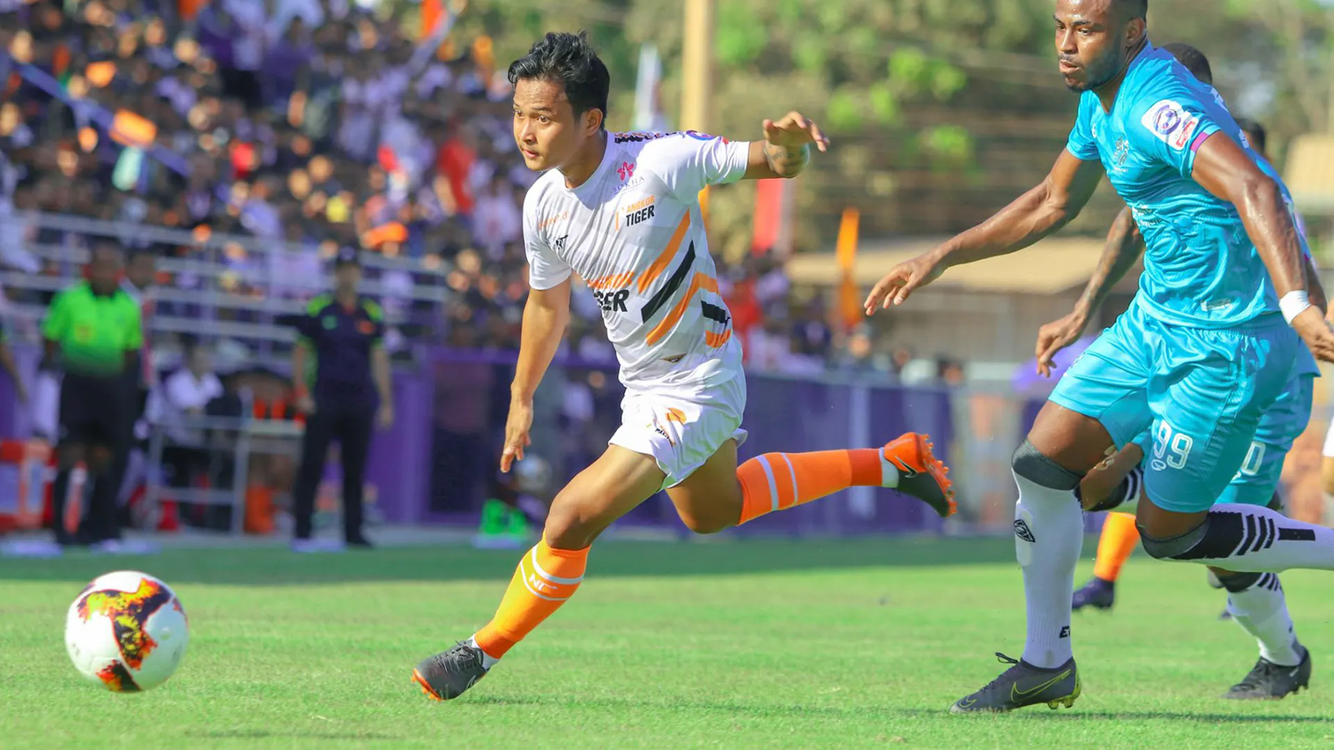 そんなアンコールタイガーFCは、2018シーズンと2019シーズンは2年連続で観客動員数No.1。子どもたちにボールを配布するサッカークリニック「1Child 1Ball プロジェクト」を始めとした活動や、クラブのブランドを活用して金融事業やIT教育事業などのサッカー以外の事業展開にも取り組んでいます。