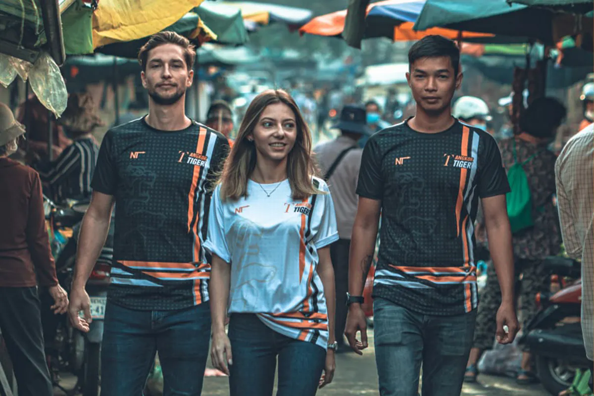 シェムリアップにある工房で製造されるクラウドファンディングオリジナルTシャツ。カンボジアから離れた日本でも、生活の一部としてアンコールタイガーと繋がることが出来ます。また、こちらのリターンをご購入していただいた方にはアンコールタイガーFCよりお礼メールを送ります。