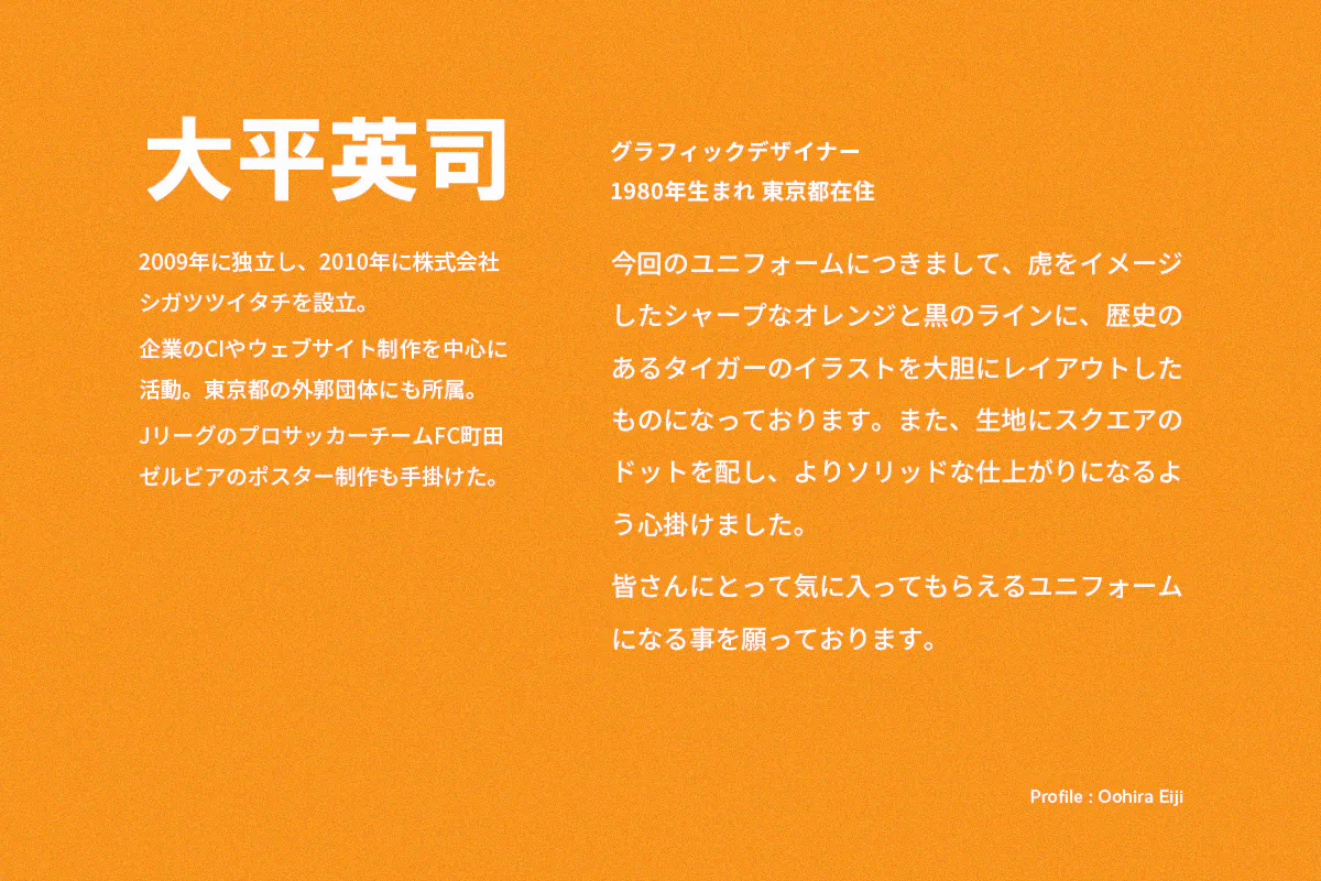 「スタジアムから街中へ」をコンセプトに2019シーズンから取り組んでいるアンコールタイガーFCの2021シーズンユニフォーム。グラフィックデザイナーの大平英司さんがデザインを手掛けました。なお、Japan Editionにはスポンサーロゴは印刷されていません。また、こちらのリターンをご購入していただいた方にはアンコールタイガーFCよりお礼メールを送ります。