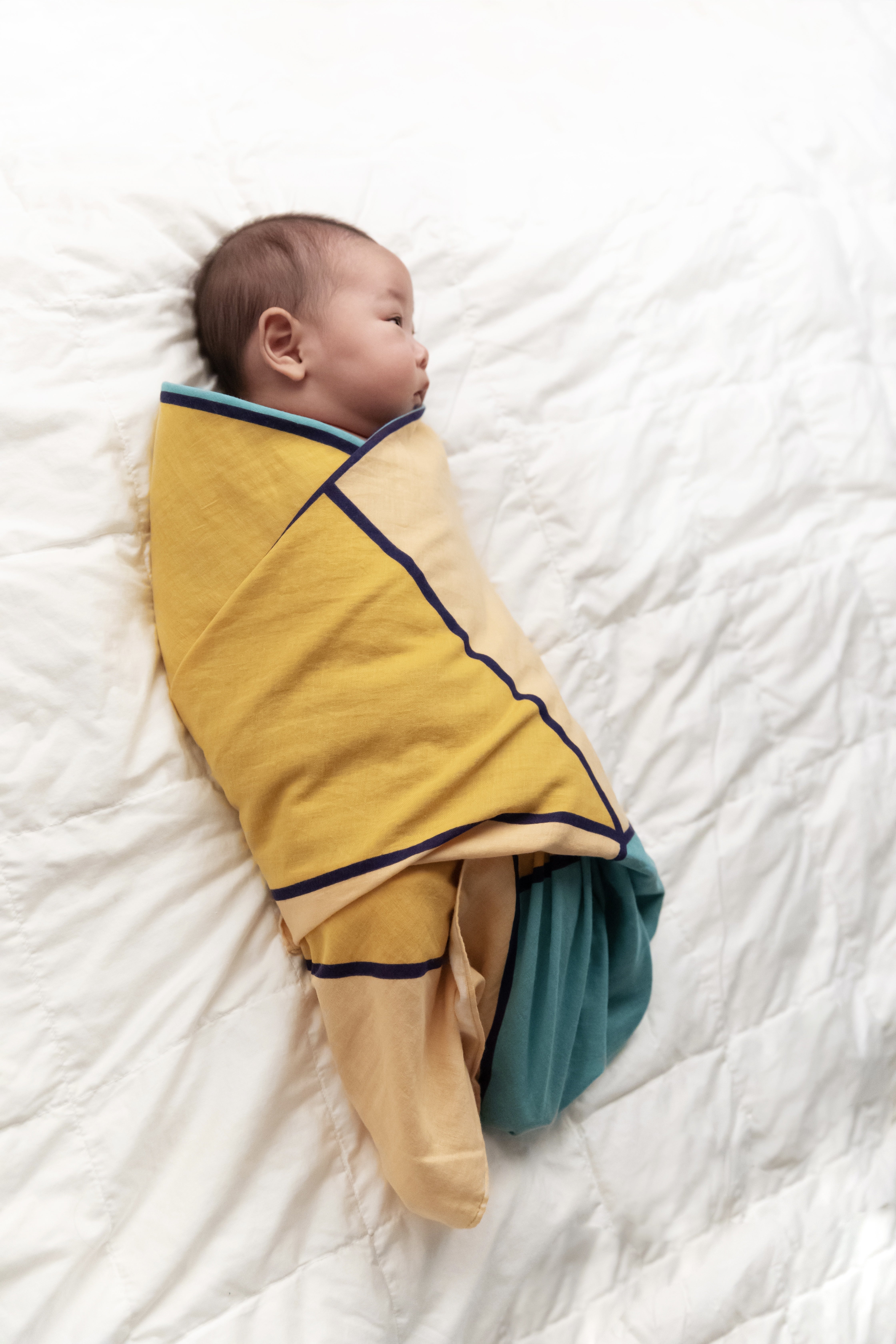 まずは、その第一弾として、コラボ商品である「おくるみ」ができあがりました!