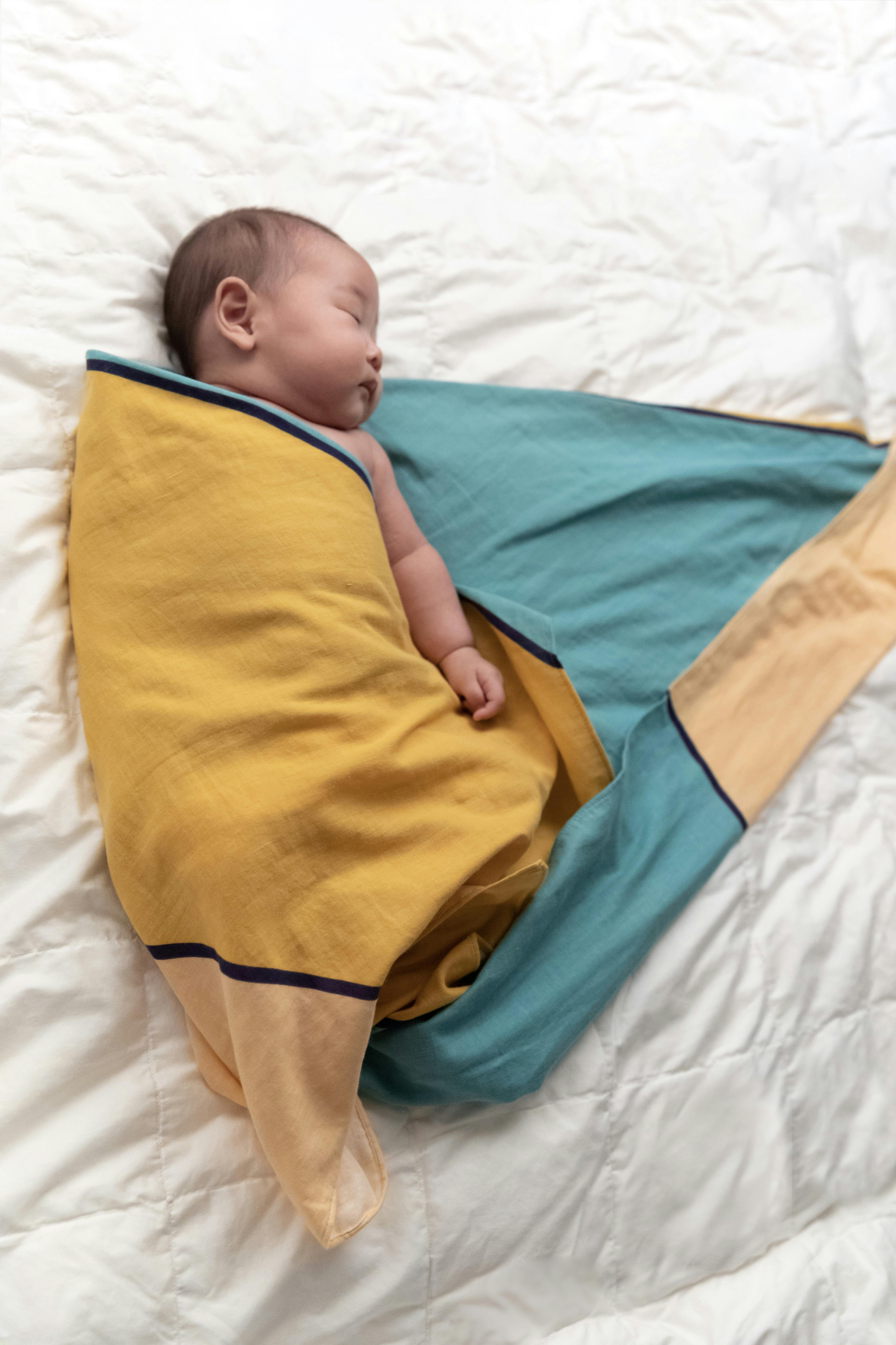 おくるみとは、赤ちゃんを抱っこしたり寝かしつけたりする際に使う優しく包む布のことを指します。新生児から生後3ヶ月頃までの赤ちゃんに対して、安心や安全、保温のため、全身を包み込んで使用します。また、生まれたばかりの赤ちゃんは首もすわっていない為、抱っこすることが簡単ではありません。しかし、おくるみを使用することによって、安全に抱っこすることが可能になります。