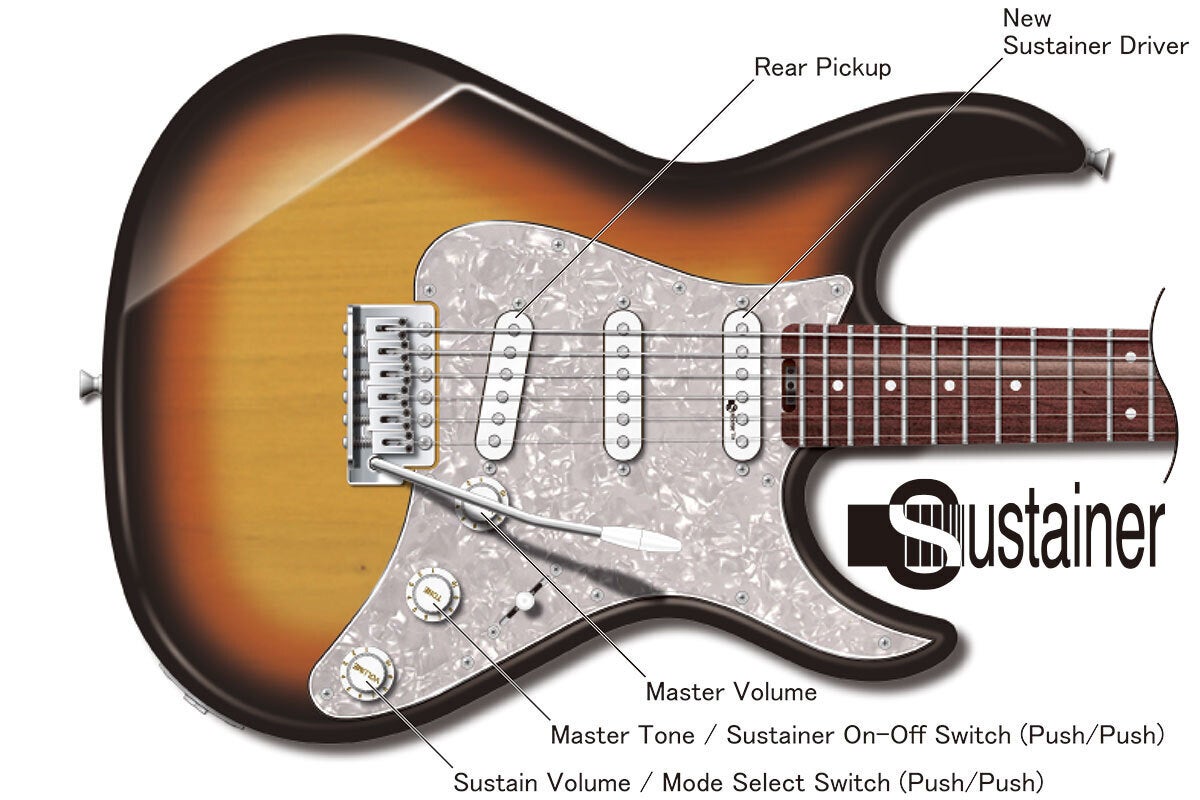 サスティナーシステムは、リアピックアップとサスティナードライバーとの距離が十分離れていることが動作条件となりますため、極端にスケールが短いギターやフレット数が多いギターに搭載した場合には正常に動作しない場合がございます。