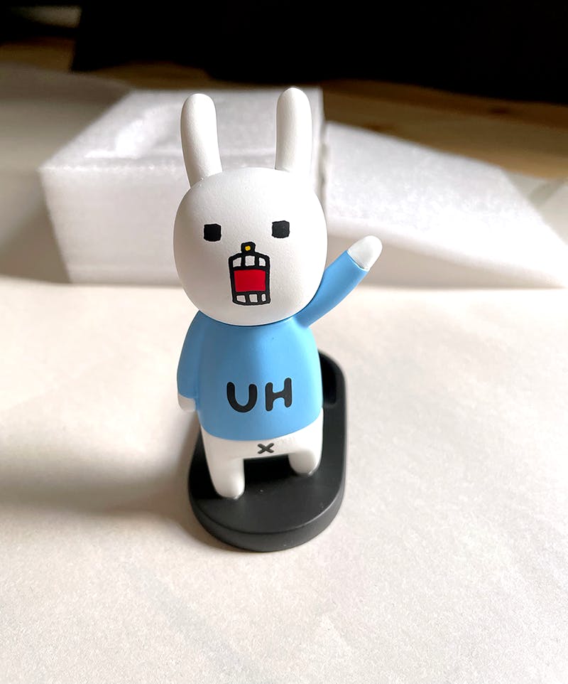 おうち時間が長引く中で、すこしでもみなさんの生活に楽しさを添えられたらと思い考案した、ウサギのウーの“使える”フィギュアです。