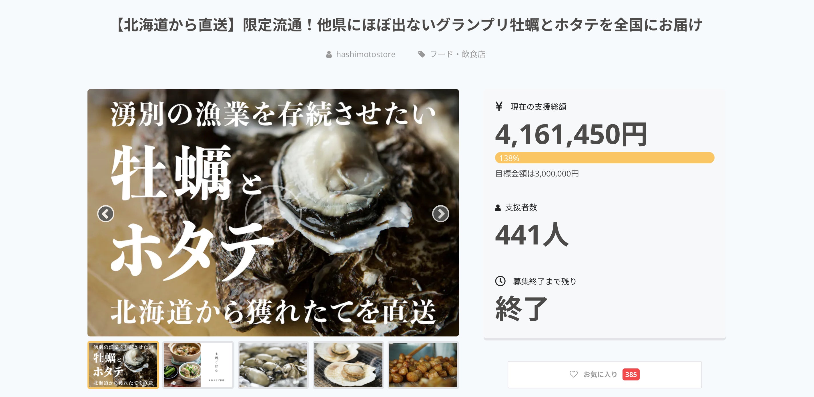 まずは湧別サロマ湖産牡蠣から、クラウドファンディングを再度実施することにいたしました。