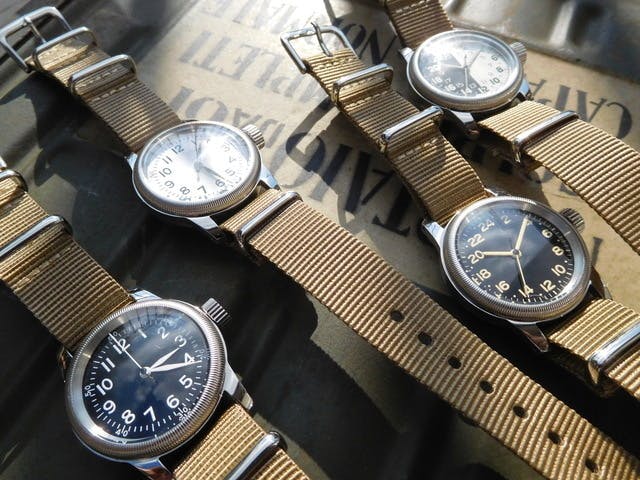 今回の”パイロット腕時計A-11&A-17A”は”コックピットクロックELASPED TIME”、”ブシップBUSHIPS腕時計”に続く軍モノ時計(M.R.M.W)第3弾になります。これら企画もマクアケでご支援いただき世に出させていただいた商品です。