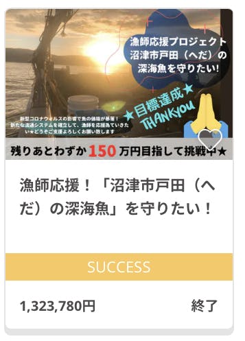 漁師だけで無く、地域の多くの皆さんが、苦しい状況に追い込まれていました。今回、漁師応援プロジェクトですが、戸田の深海魚を通じて、戸田をPRし、戸田という町を沢山の人に知ってもらいたいです。そして、観光業を盛り上げ、戸田を元気にしていきたい思いが詰まっています。