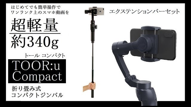 【TOOR:u Compact】は超軽量・小型・折り畳み式コンパクトジンバルです。専用アプリを使うことによりスマートフォンでの自撮りや動画撮影の際に手振れを軽減し今までよりワンランク上の動画を撮影を楽しむ事が出来ます。Vlog撮影にも最適!
