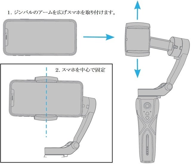 取付後、電源ボタンを長押しでジンバルが起動します。
