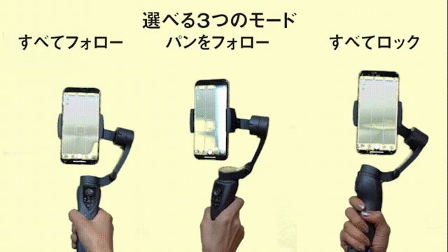 3つのモードはジンバル本体の固定モード切替ボタンで切り替えが可能!