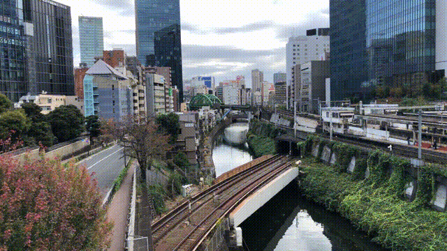 背景の左右バランスを崩さずに撮り続けたい状況で、持ち手の動きにジンバルが反応すると画面が左右に振れてしまう。3軸の動きを無効にすることで、綺麗な直線移動撮影ができる。