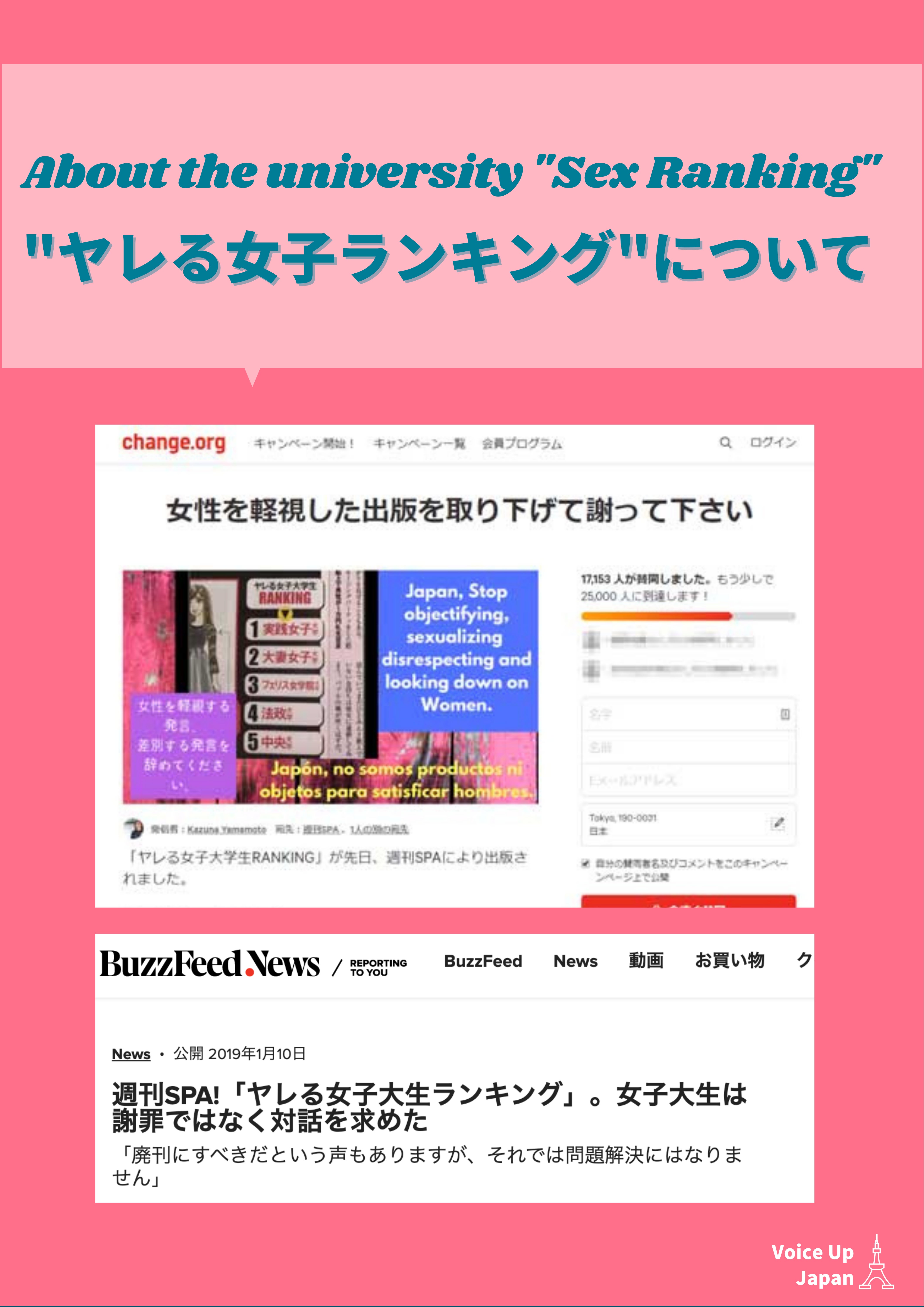 今までの活動:ヤレる女子ランキングに対する署名活動 / The Petition against the "University Sex Ranking"
