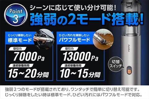 もちろん、標準モードでも、一般的なコンパクトハンディクリーナーや、「AutoBot」旧モデルよりも強い吸引力を実感頂けるはずです。