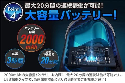 4. 大容量バッテリー最大20分間の連続稼働可能!
