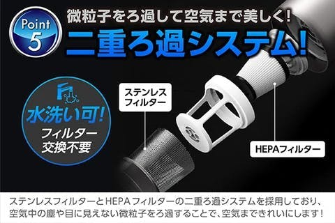 5. 二思ろ過システム!微粒子をろ過ごして空気まで美しく!