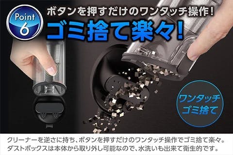 意外と面倒なクリーナーのゴミ捨て。まだいいかな…と放置していると、吸引力が低下してしまうことも。こまめなゴミ捨ては大切です。