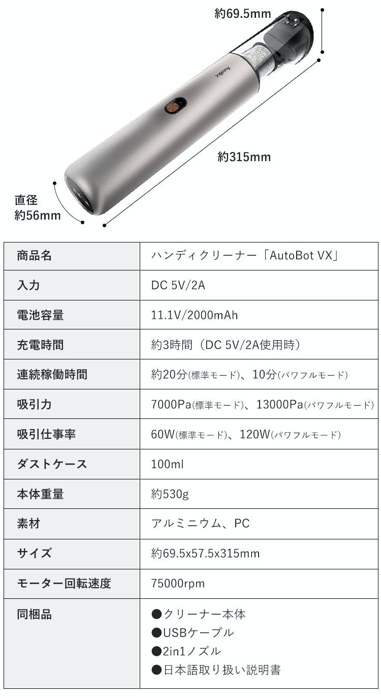 小型ハンディクリーナー最強クラスの吸引力13000Paを誇る「AutoBot VX」が登場!