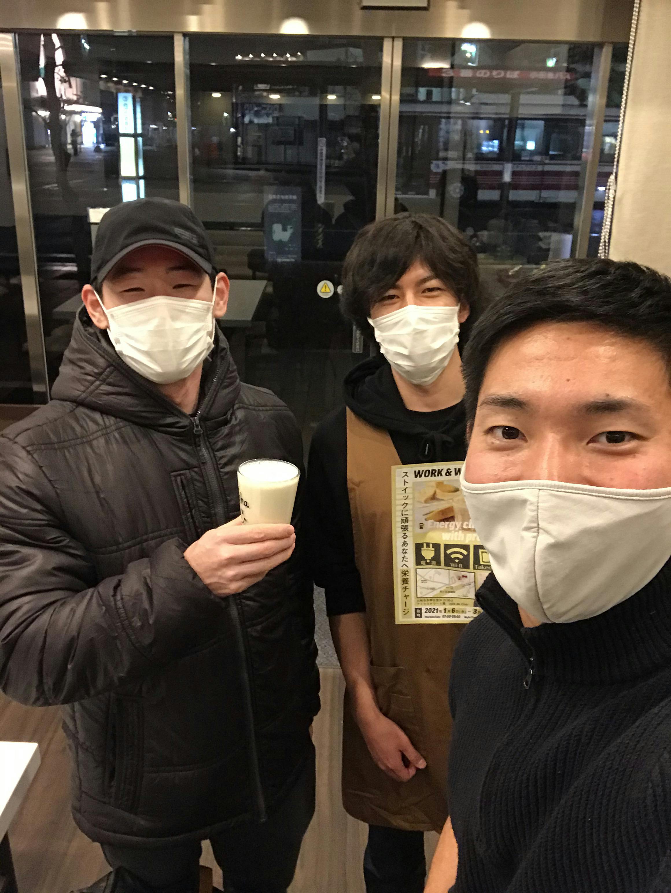 2021/01/25 11:20おはようございます!ストイックカフェ本日も元気に営業しました。現在、緊急事態宣言が再度発令された事もあり、朝:7:00〜9:00夜:18:00〜21:00 → 20:00 の時短営業で行っています。(※無休)我々はこのコロナ禍でも皆様にプロテインスムージーをお届けする為、テイクアウトにも力を入れています。(新しいのぼりを購入し、アピール中です!!)※看板は場所をお借りしているカフェ様の名前が記載されています。よくお客様にお聞きされるのですが、9:00〜18:00は私たちが場所をお借りしている元々のカフェさんが営業されています。私たちはそのカフェの営業時間外をお借りする形で営業しています。屋号は違いますがこの黄色の看板や立て看板、のぼりを目印にお越し頂ければ幸いです。皆様のご来店お待ちしております。宜しくお願いします!ぼぶ もっと見る