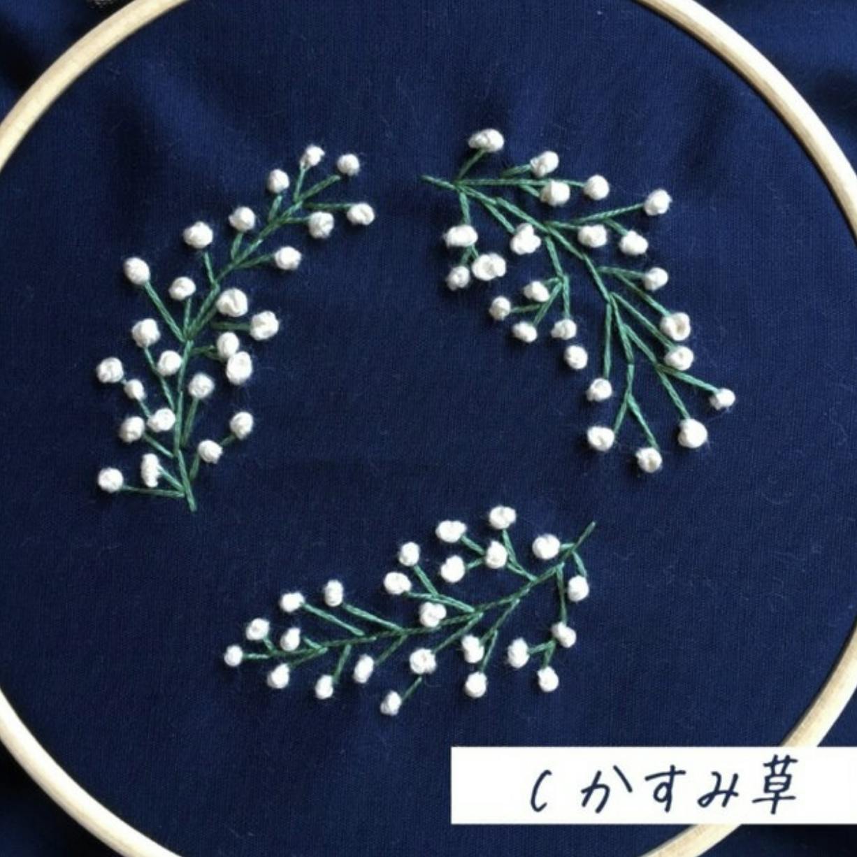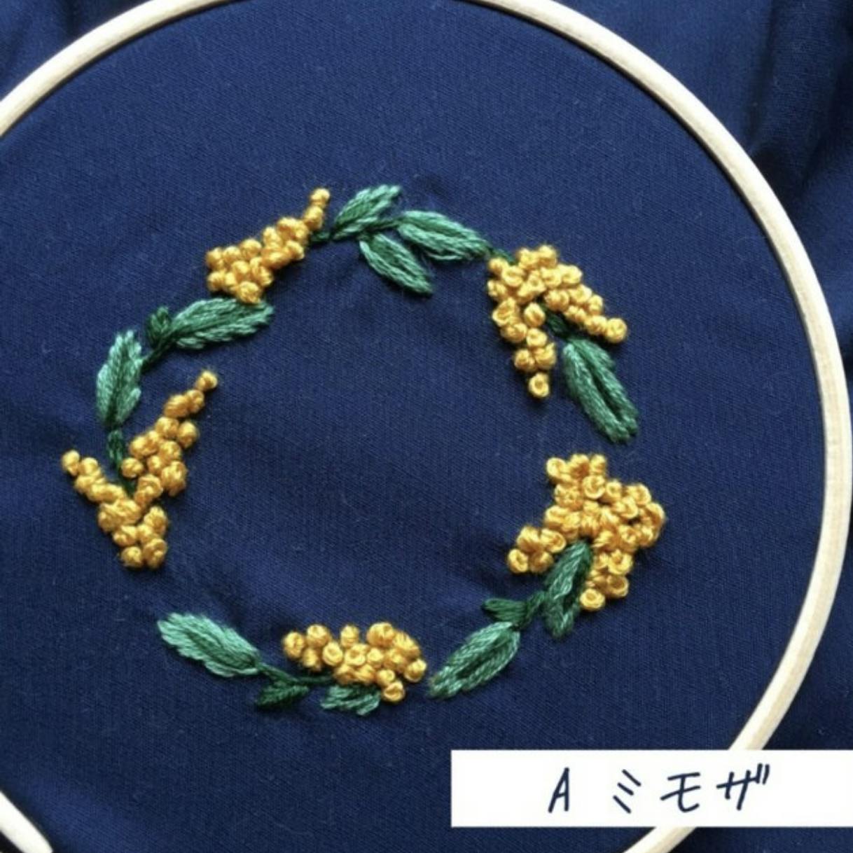 刺繍部分はミモザとかすみ草の2種類デザインが有ります。