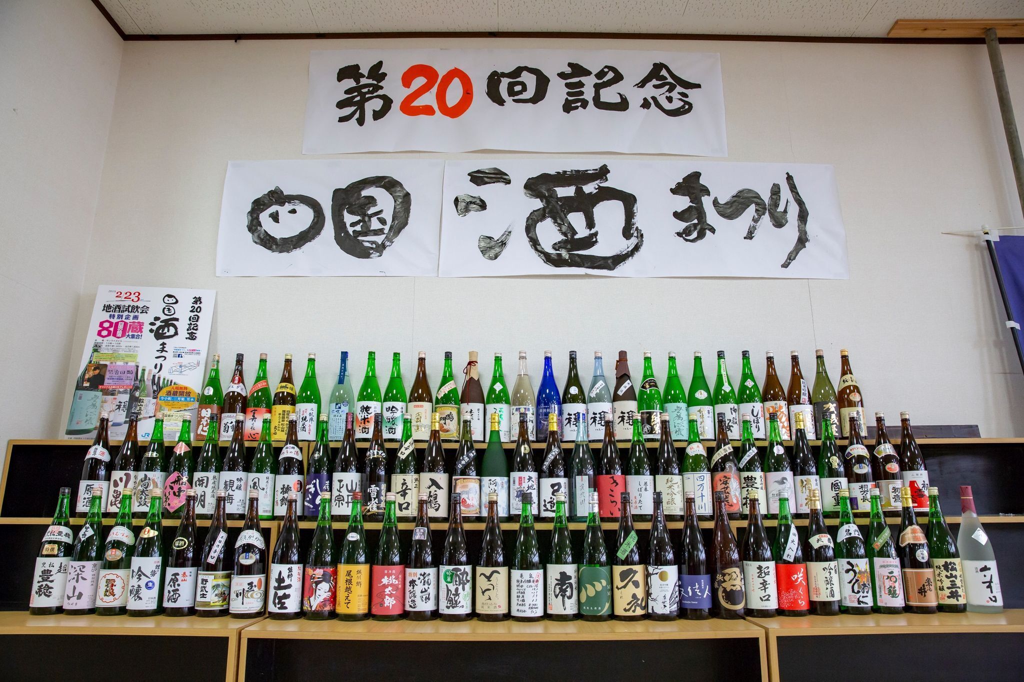 2019年2月の第20回目は記念開催として、四国内ほぼ全ての80蔵の銘酒を集合させました。また、日本酒愛好家では知らない人はまずいない、吉田 類 さんの「記念トークイベント」も開催し、更にスケールアップをして参りました。