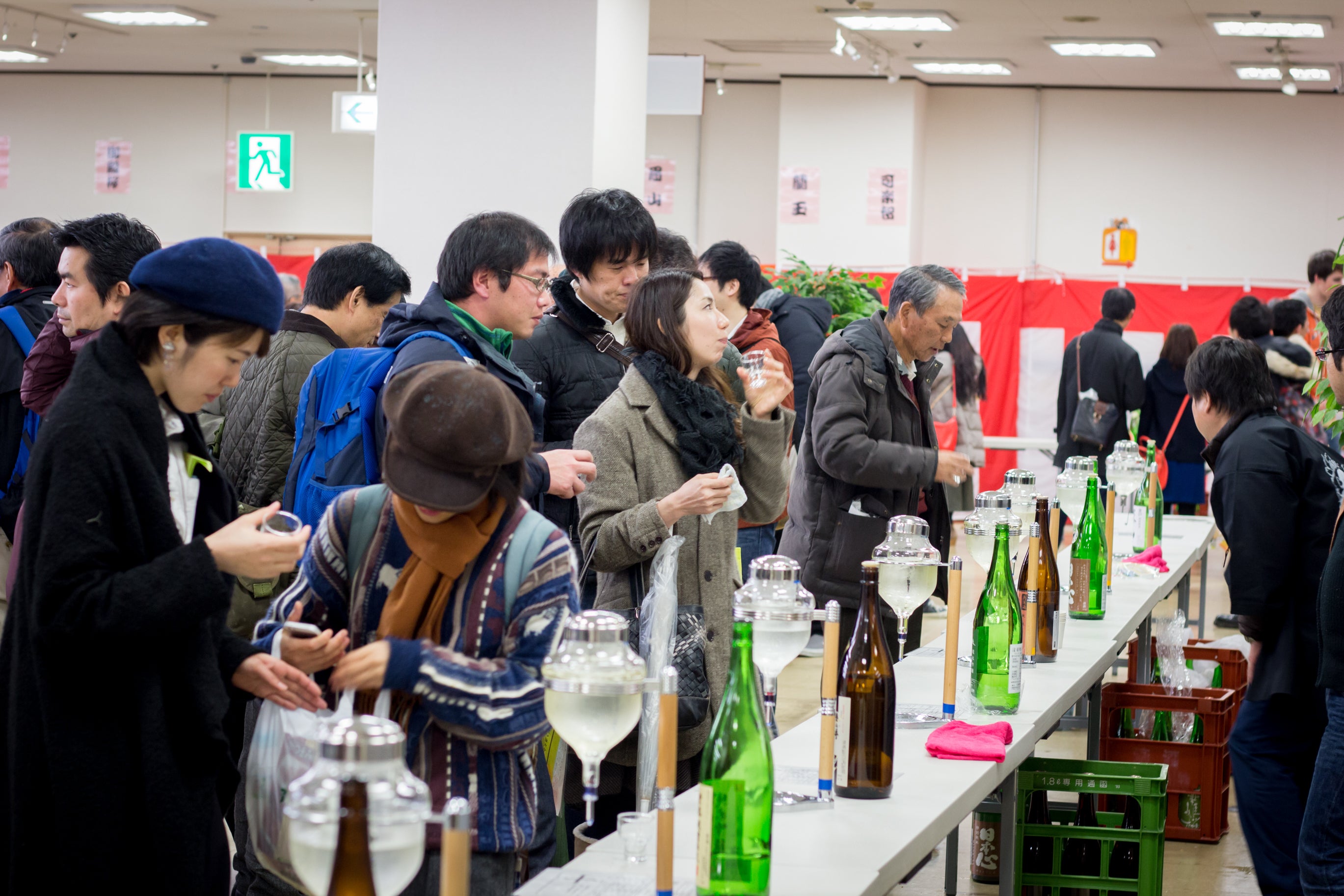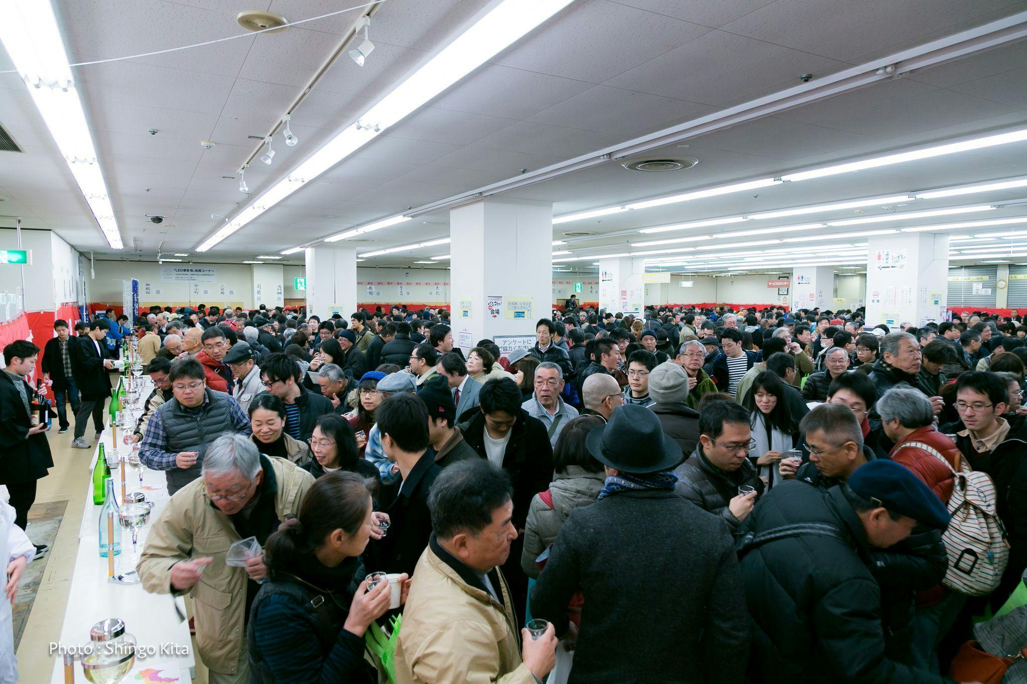 三好市池田総合体育館 開催当初は、地酒試飲会と酒蔵見学会のみのイベントで、来場者数も約1,400人ほどでしたが、関係団体のご協力の輪が広がり、協賛イベント数も現在は約20程が三好市内各地で開催され、イベント全体での参加者数は30,000人に迫るまで拡大し、三好市の冬の一大イベントとして定着したのではないかと感じます。