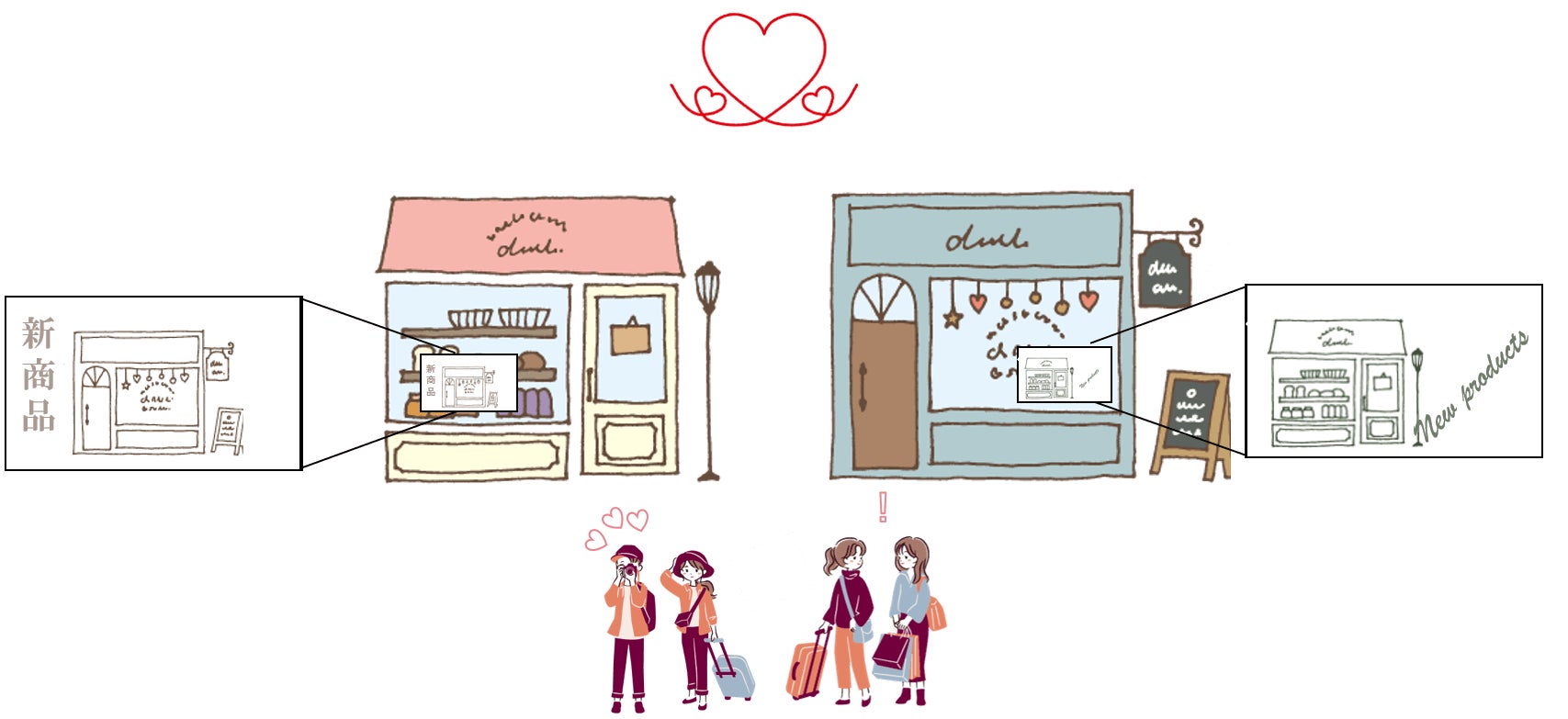 店舗同士がお互いを紹介し合う事で、訪れた観光客に新たな価値を提供します。