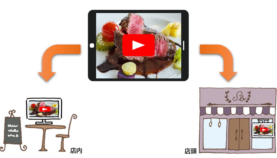 店舗のopen時、店内又は店外に画像(10秒)の支援者様の広告を提示します。