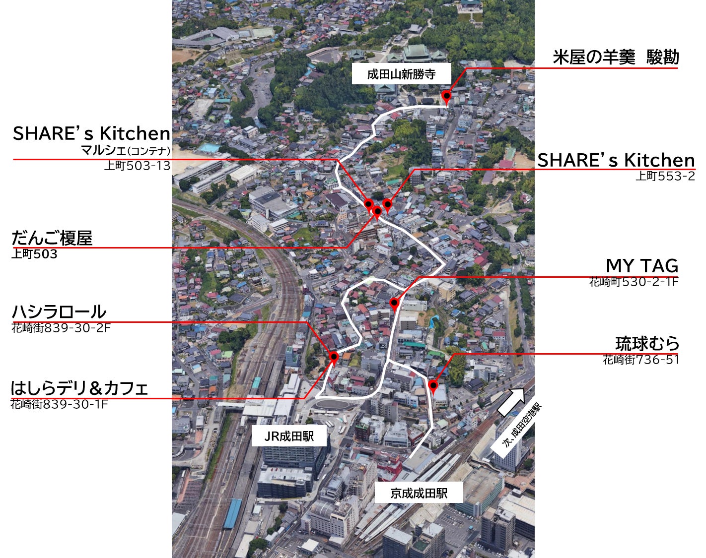 また、最寄り駅である成田駅(JR/京成)から新勝寺までは徒歩数十分かかる為、その区間では様々な商店が乱立しています