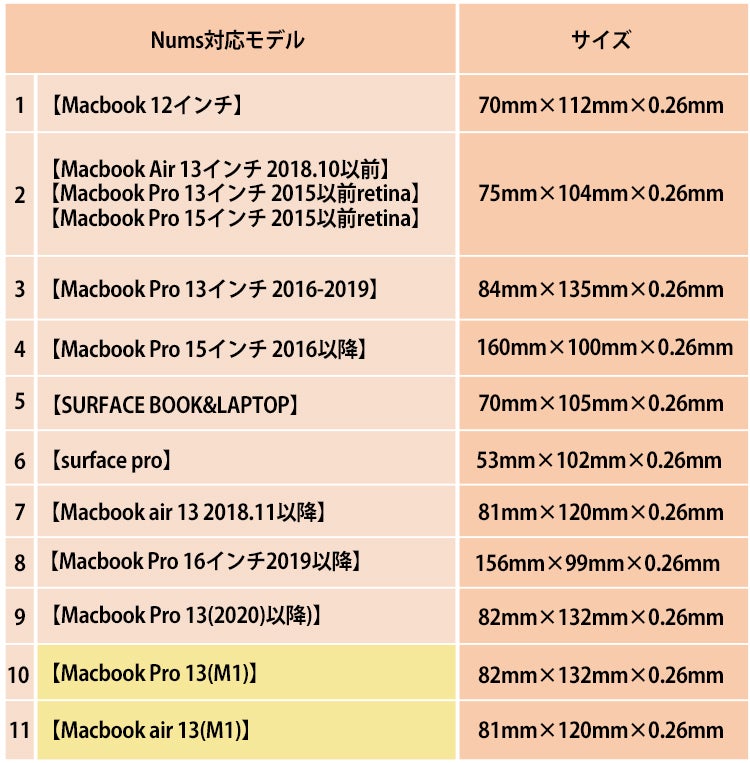 NumsはMacbook、Surfaceのあらゆるタイプのモデルをご用意。あなたのお持ちのデバイスに合わせて機種をお選びいただけます。