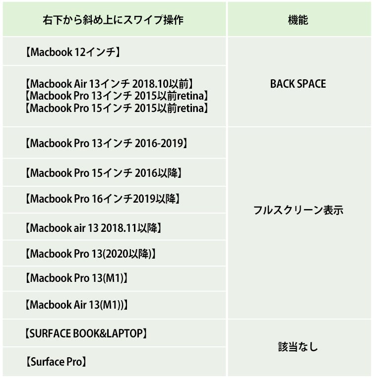 (注3)Surface laptop3はトラックパッドサイズが異なるため、現時点では対応モデルはありません。