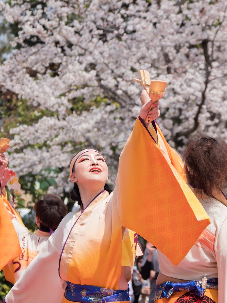 そして、踊り子の皆さんに共通しているのは、写真を見てもおわかりいただける通り「笑顔」です。桜の元で終始笑顔で踊り続ける姿は、見ているだけで元気をもらえ、自分たちも踊り出したくなるほど素敵なものです。踊り子さんの表情にも注目ですね!