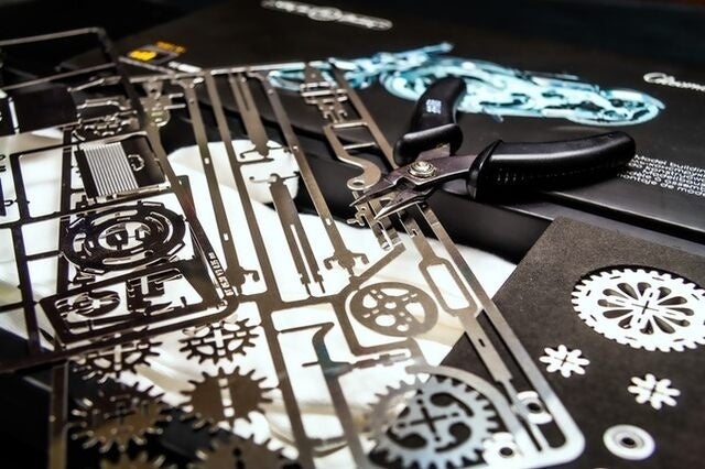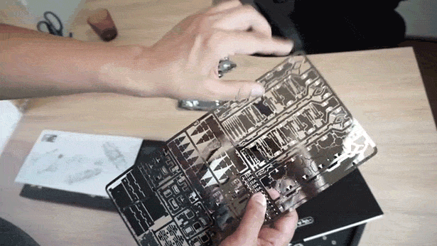 組み立てはステンレス板から一つ一つのパーツを切り離すところからスタート。