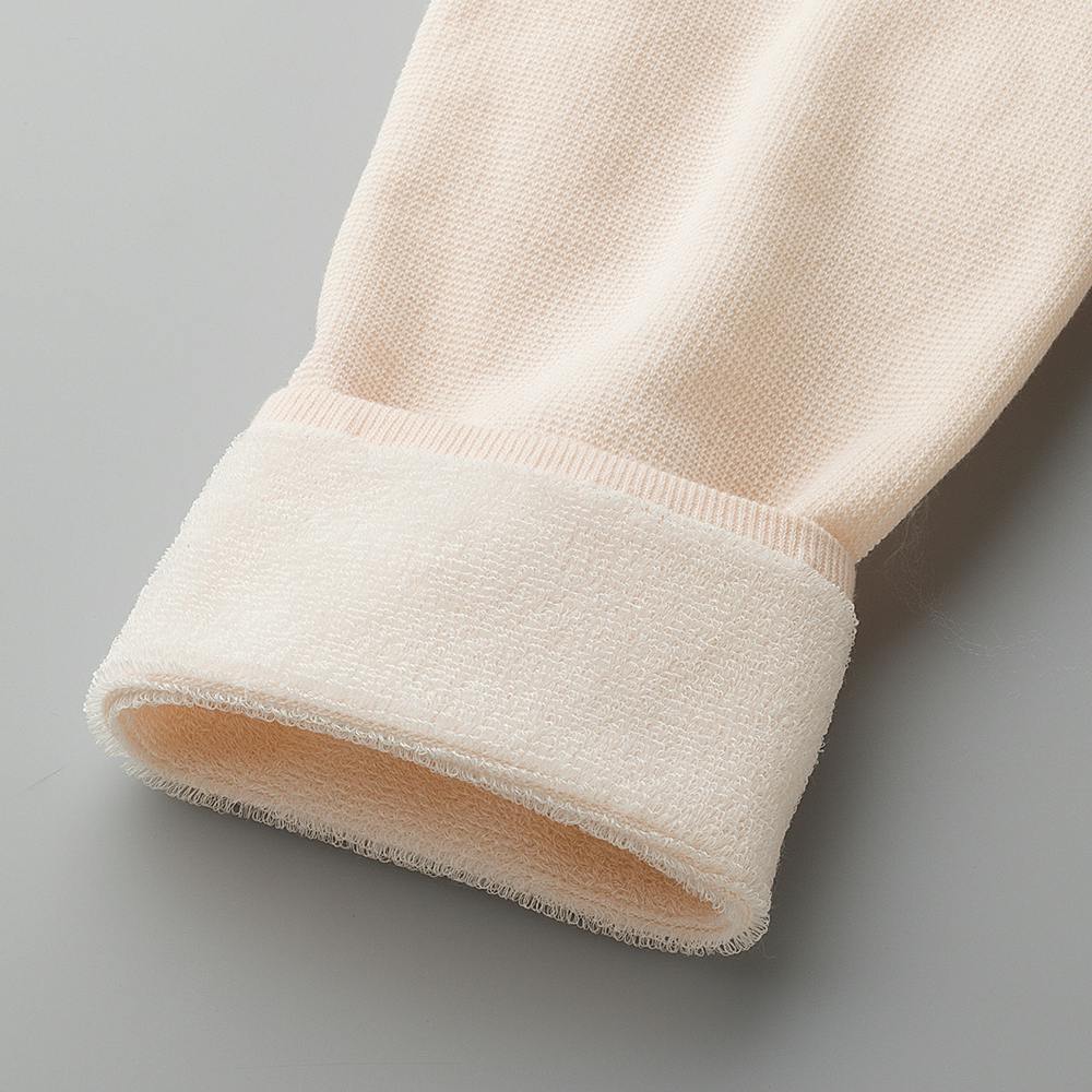 ひざ上からひざ下部分には最高級保温繊維メディロンという糸を使用しパイル編みになっているため暖空気層を作り暖かさをしっかりキープし冬の寒さはもちろん、夏場のクーラーからくる冷えからあなたを守ります。