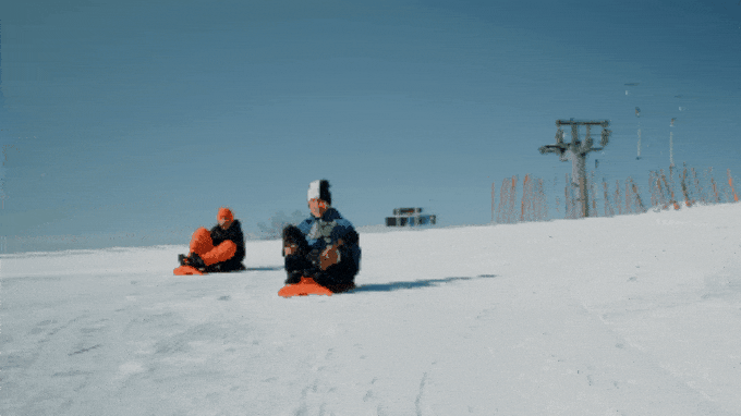 体重移動で舵をとりゲレンデを自由に滑ることができるソリ!