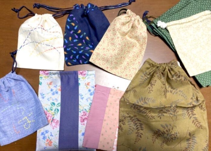 着物や洋服の生地や季節に応じた生地を仕入れ、知的障がい・精神障がいのある利用者さんたちに刺繍を施してもらいました。小物入れとしてお使いいただけます。