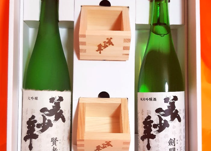 純米吟醸 美少年 剣門720ml、大吟醸 美少年 賢者720ml、オリジナル枡2個付き。