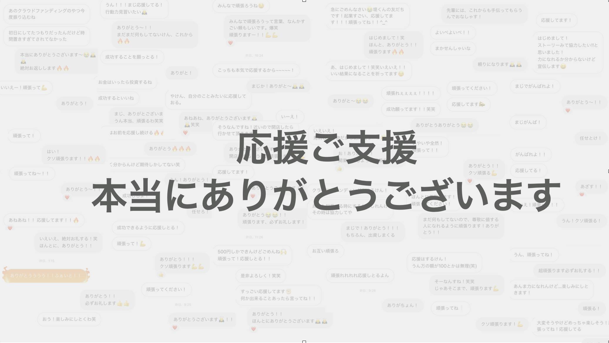 2021/01/18 11:33同世代のみんなからの本当に心強い応援。インスタグラムを中心に、本当にたくさんの同世代、もちろん大人の方々からも、たくさんの応援と支援をいただいています。正直ここまで反応は予想していなかったので、本当に感謝しています。本当にありがとうございます。ここの写真に載っているのは、一部で他にもたくさんのメッセージいただいています。本当にありがとうございます。初日の動向と、次の目標。クラウドファンディング初日、目標としていた、10%を達成することが、出来ました。初日に、10%を達成したプロジェクトの成功率は約88%と言われています。ひとまずの目標は達成できたので、スタートは切れたかなという感じです。次の目標は、1週間で25%達成です。1週間で、2~30%集めたプロジェクトの成功率は、約76%と言われているので、ここを目標に引き続き、SNSでの発信を中心に、赤mでmm活動を行なっていきたいと思います。ひき続きご支援のはどよろしくお願いいたします。 もっと見る