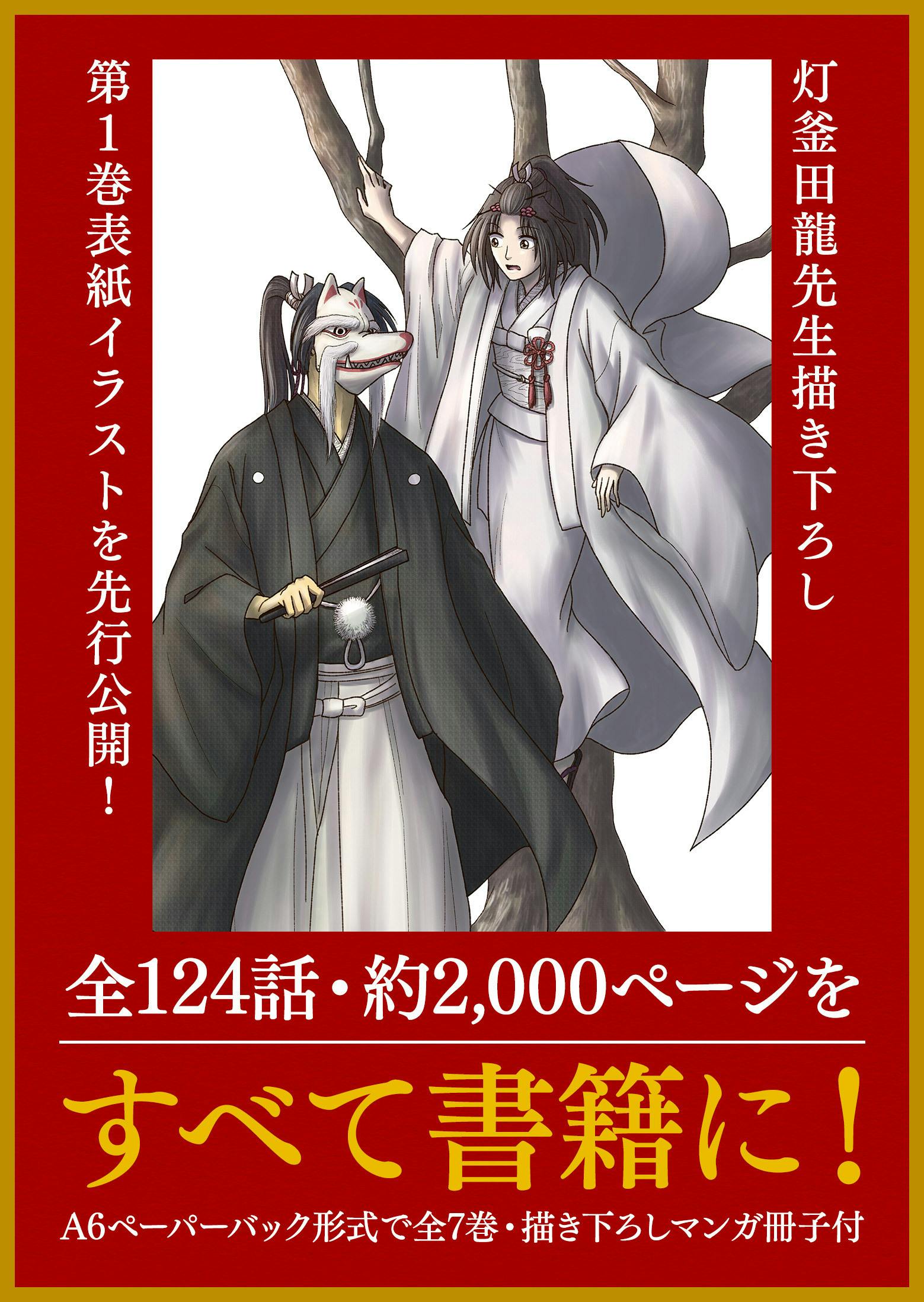 124話までの約2,000ページ相当をコミック文庫サイズ(A6)・ペーパーバック形式(カバー無し)・全7巻構成にて収録します。さらに書籍収納用の特製BOXが付くリターンもご用意!書籍表紙とBOXは全て灯釜田龍先生描き下ろしにてご用意します!