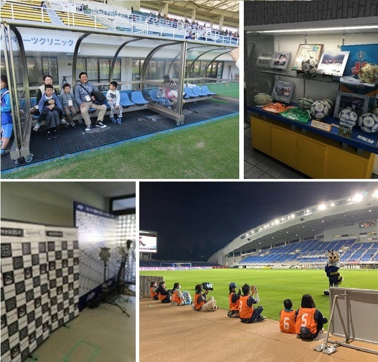 例)ロビー展示物→3F貴賓室→4F放送室・DJ室→5Fラウンジ→インタビューボードでの記念撮影→選手ロッカー見学→ピッチでの記念撮影→練習見学 等々