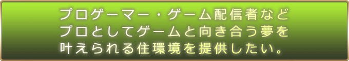 3.プロゲーマー・ゲーム配信者など、プロとしてゲームと向き合う夢を叶えられる住環境を提供すること。