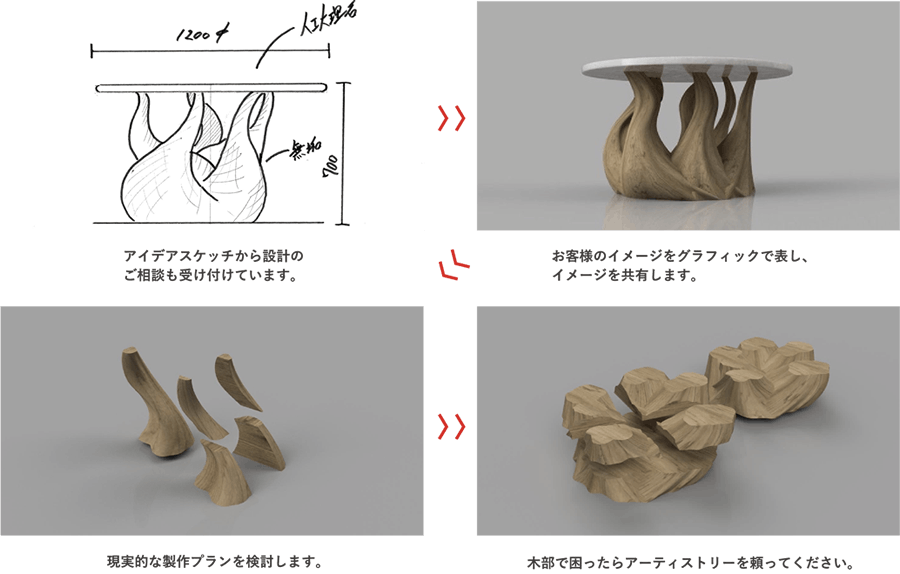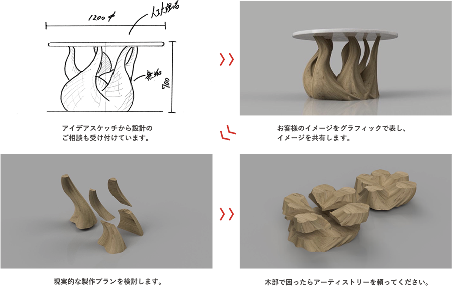 職人在籍数東海地区NO.1のメンバーがあなただけのオーダー家具、アート作品を作ります。