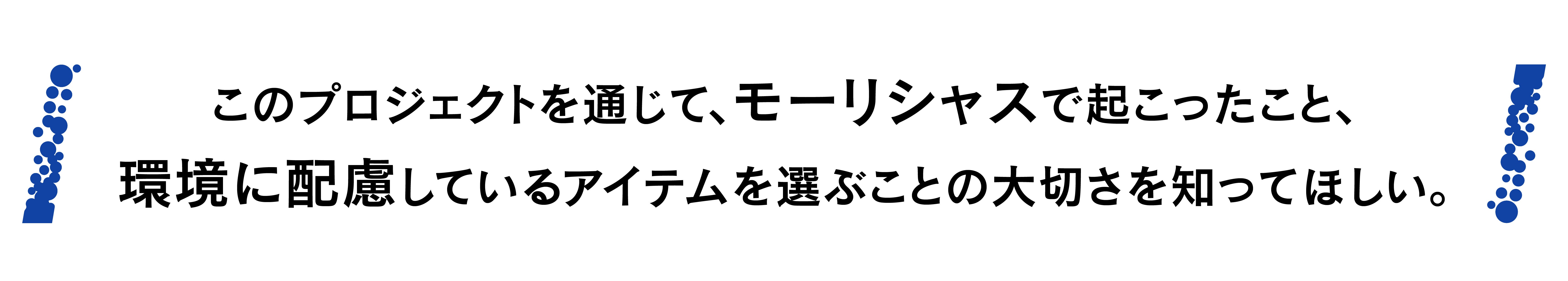 そしてこの活動を、モーリシャスにとって重要な主要産業であるファッションを通じて行うことにより、今までモーリシャスの事を知らなかった方々や、支援の方法を探していた方々に幅広く認知して頂くことができると考えています。毎日着るTシャツや毎日使うエコバックを通して、モーリシャスの海、コロナや座礁事故を乗り越えようと頑張っている方々に、遠く離れた日本から想いを馳せ、支えあう素晴らしい関係が築ければと願っています。