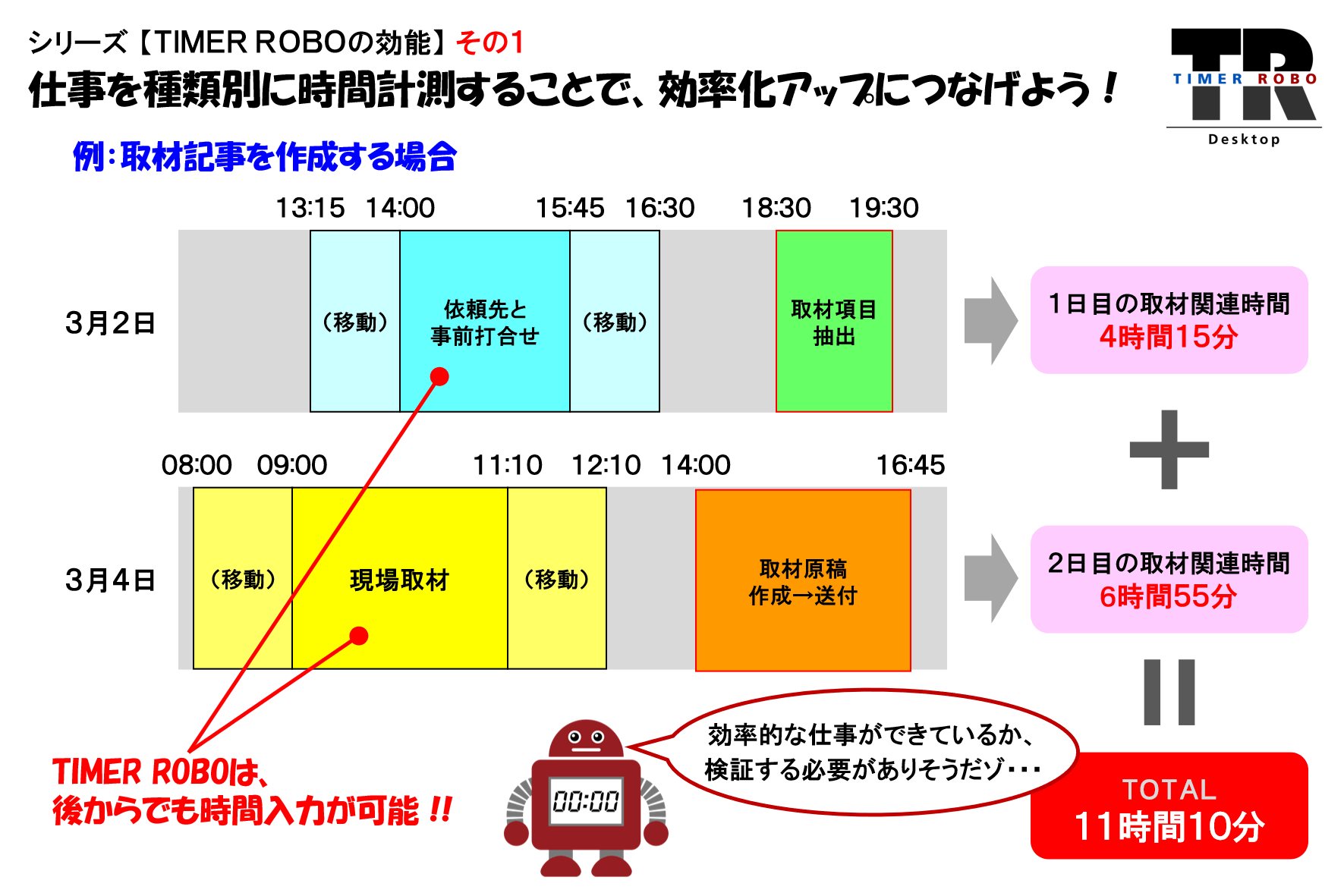 シリーズ【TIMER ROBOの効能】その1 : 仕事を種類別に時間計測することで、効率化アップにつなげよう!