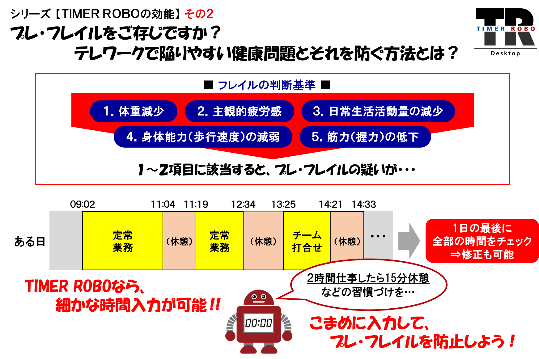 シリーズ【TIMER ROBOの効能】その2:プレ・フレイルをご存じですか? テレワークで陥りやすい健康問題とそれを防ぐ方法とは?